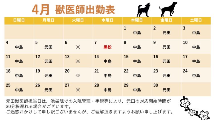 2021年4月 獣医師勤務表