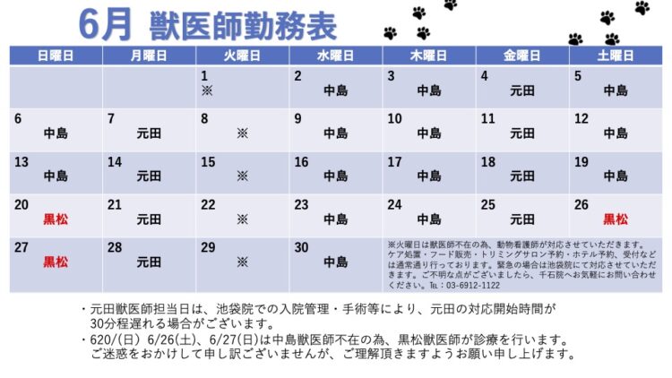 2021年6月 獣医師勤務表