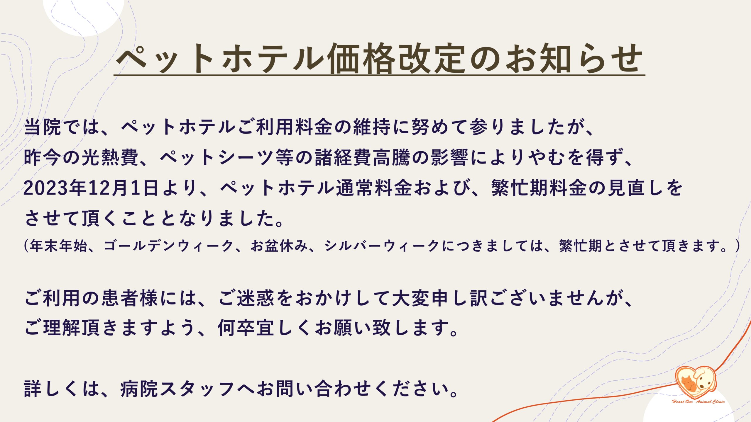 価格変更につきましては、11月初旬より院内の掲示などでご案内をしておりましたが、