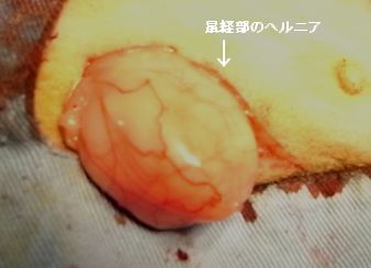 Case 16 鼠経部ヘルニアのダックス 2014年7月30日2025年7月12日 9才のミニチュアダックス、鼠経部のヘルニア。 ヘルニア嚢を切開すると、中には子宮と子宮間膜の脂肪が入り込んでいました。 内容物を腹腔内に戻して、鼠経輪を閉鎖。