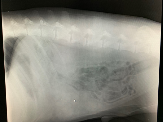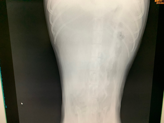 Case 54 犬 9才 去勢雄 フラットコーテドレトリバー 2020年3月9日2025年7月12日 6/15に脾臓破裂で脾臓摘出を行いました。その際の病理結果は「血管肉腫」でした。7月に胃捻転で再度手術。7月から抗がん剤「ドキソルビシン」を3週間毎に投与しています。上腹部脾臓があったところに不整エコーが見られます。レントゲンで消化管が下腹部によっています。腹水も確認でき、貧血とアルブミン(1.8)の低下が認められました。 9月末に再度腹腔破裂で血腹となり危険な状態に陥りましたが、内科治療が奏功しました。