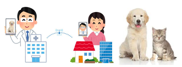 オンライン診療とは遠隔診療とも呼ばれ、獣医療機関から離れた場所にいる動物に対して獣医師が診療を行う行為です。